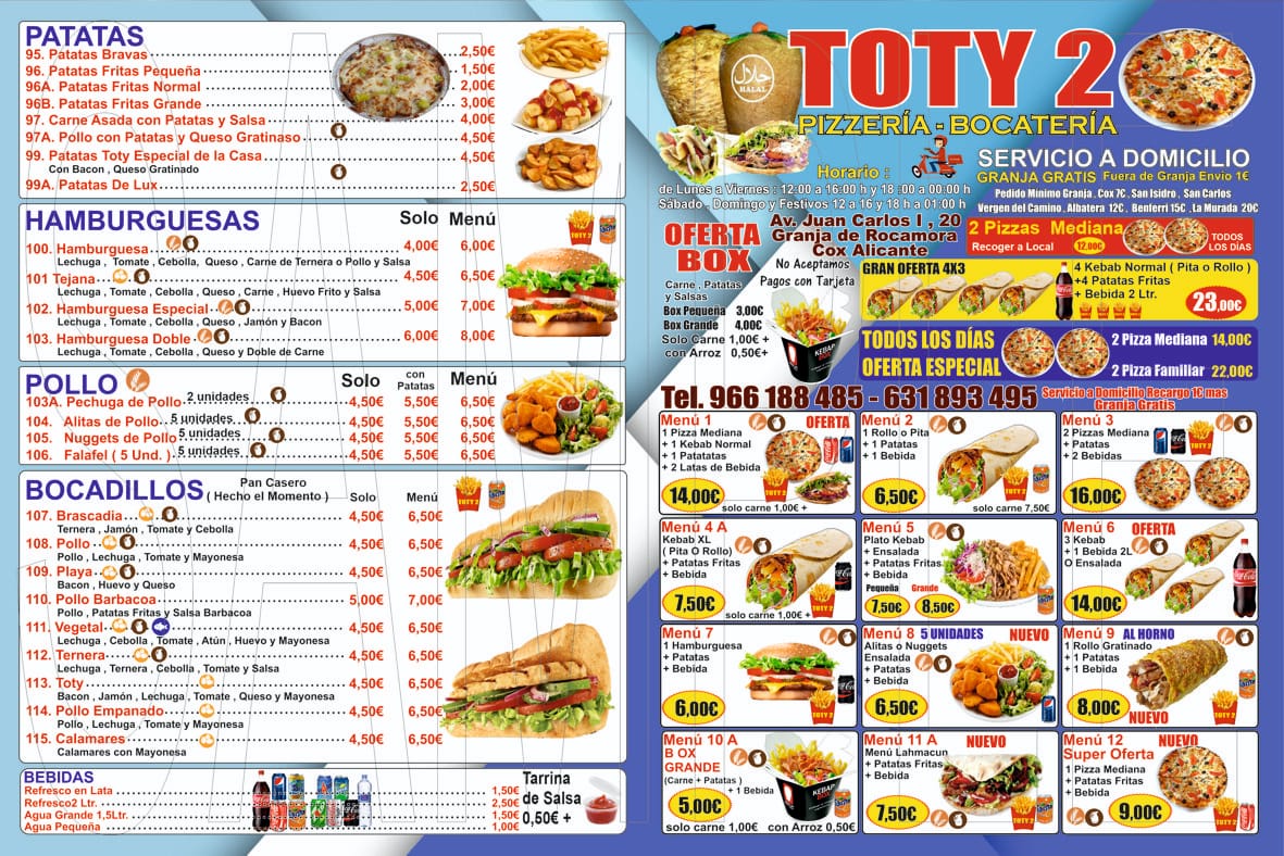 Pizzaria kebab toty 2 granja de Rocamora Menu